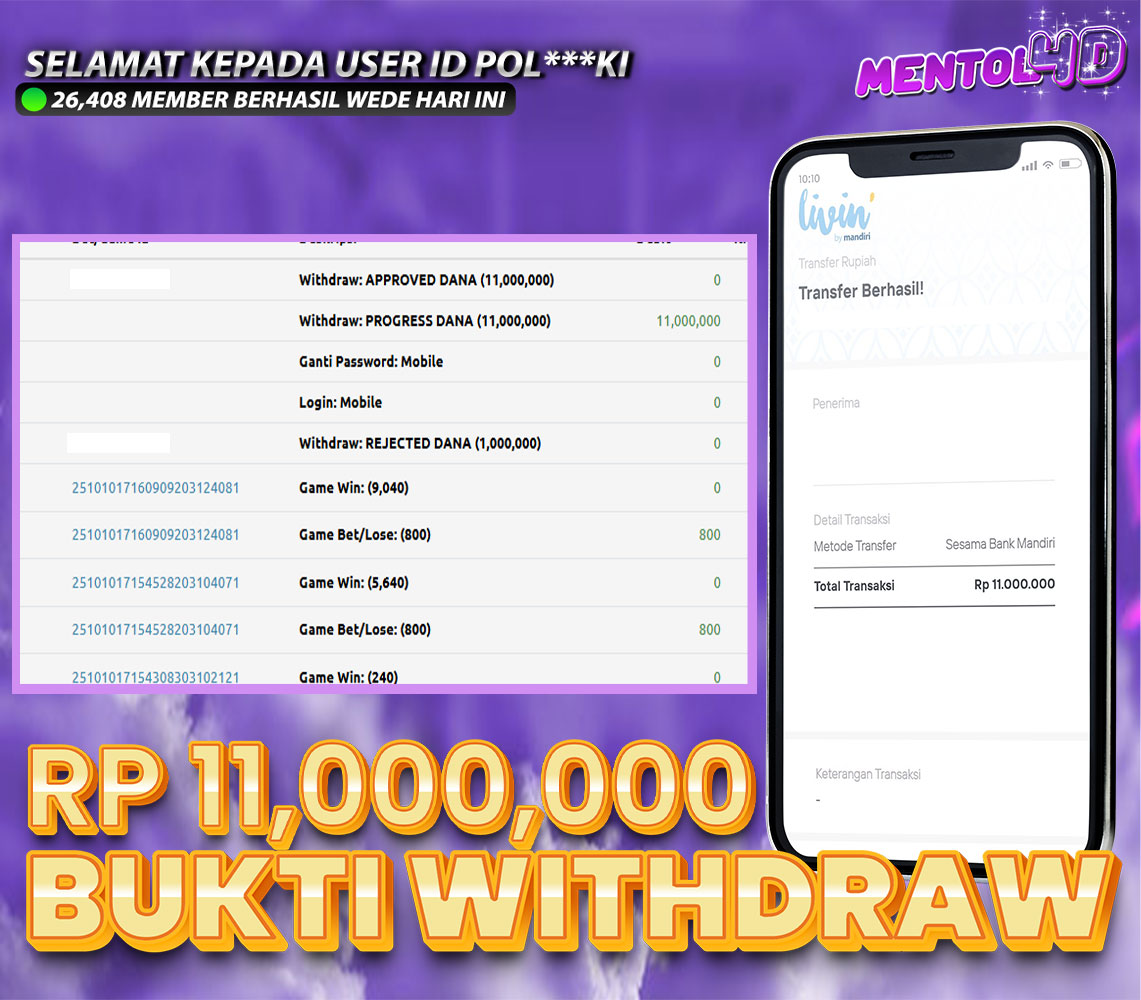Ayo segera daftarkan diri kalian pada Situs kami di MENTOL4D, dengan minimal deposit Rp.20.000.- & minimal withdraw Rp.50.000.-