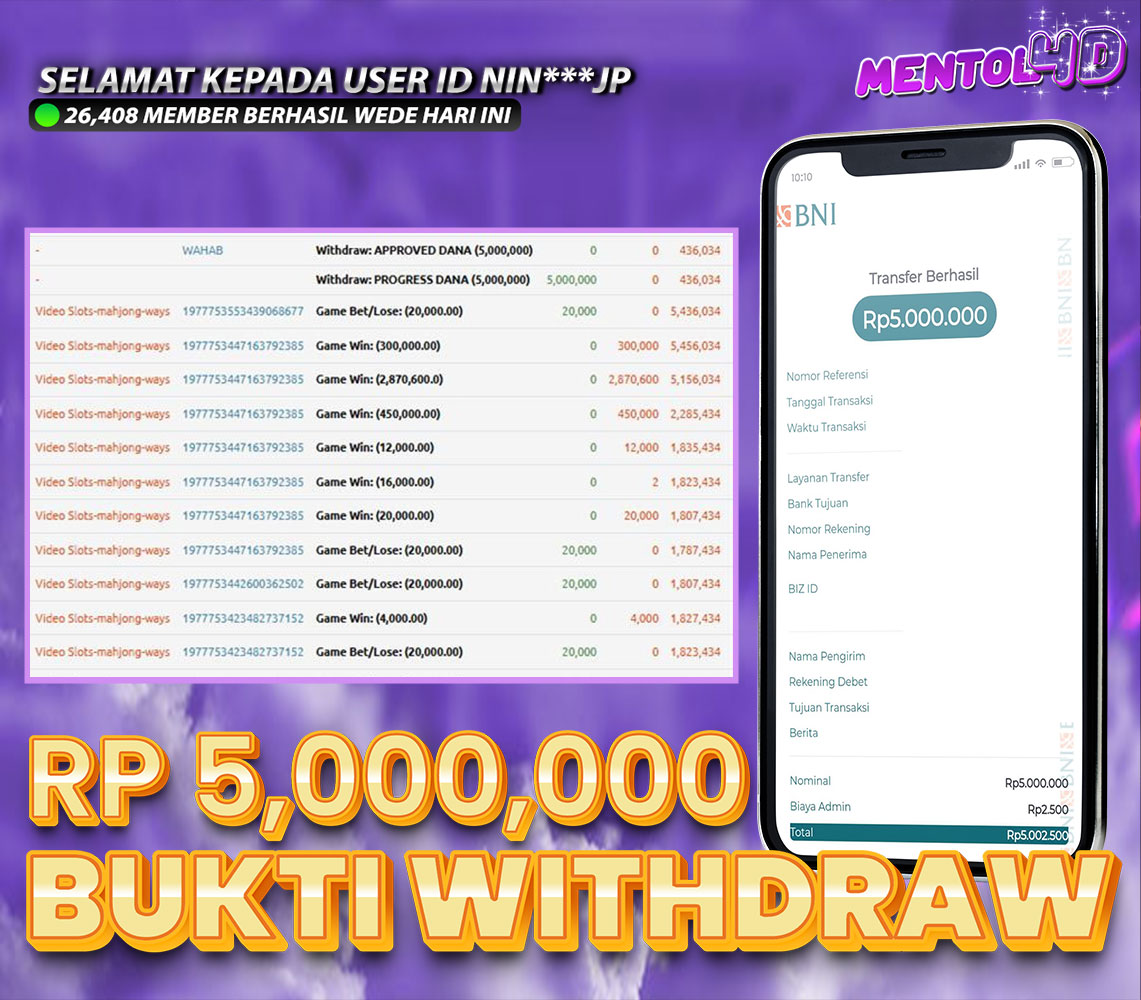 Bukti Bayar Member Withdraw 5 Juta Bermain Di Mahjong Ways 2 Pakai Pola Gacor Dari Mentol4D!!