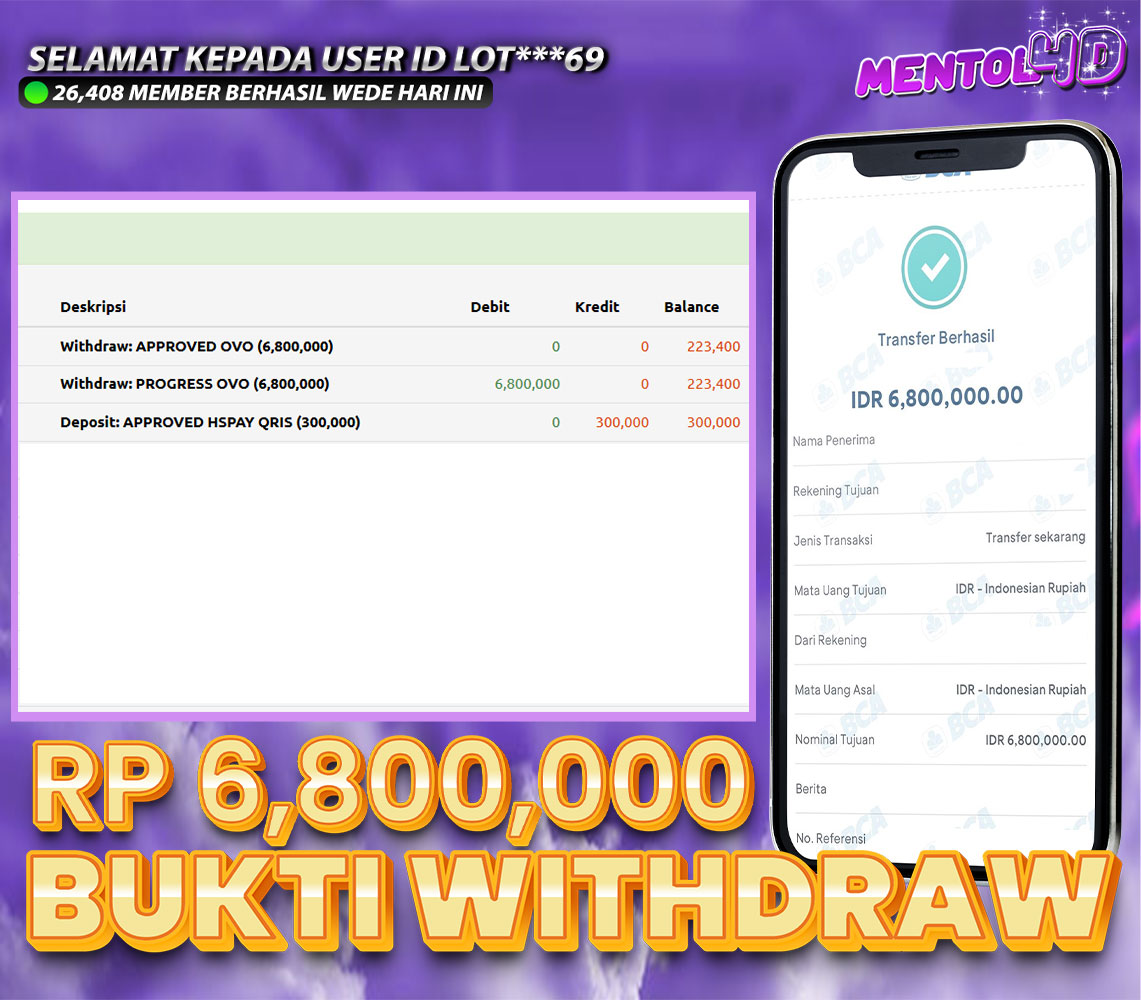 Ayo segera daftarkan diri kalian pada Situs kami di MENTOL4D, dengan minimal deposit Rp.20.000.- & minimal withdraw Rp.50.000.-