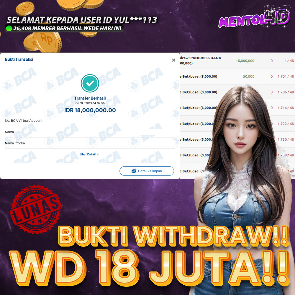 Ayo segera daftarkan diri kalian pada Situs kami di MENTOL4D, dengan minimal deposit Rp.20.000.- & minimal withdraw Rp.50.000.-