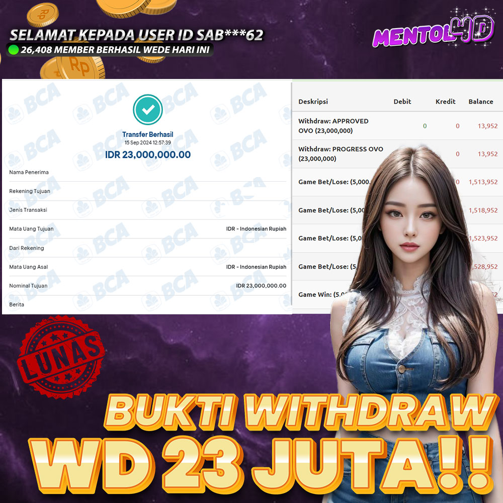 Ayo segera daftarkan diri kalian pada Situs kami di MENTOL4D, dengan minimal deposit Rp.20.000.- & minimal withdraw Rp.50.000.-