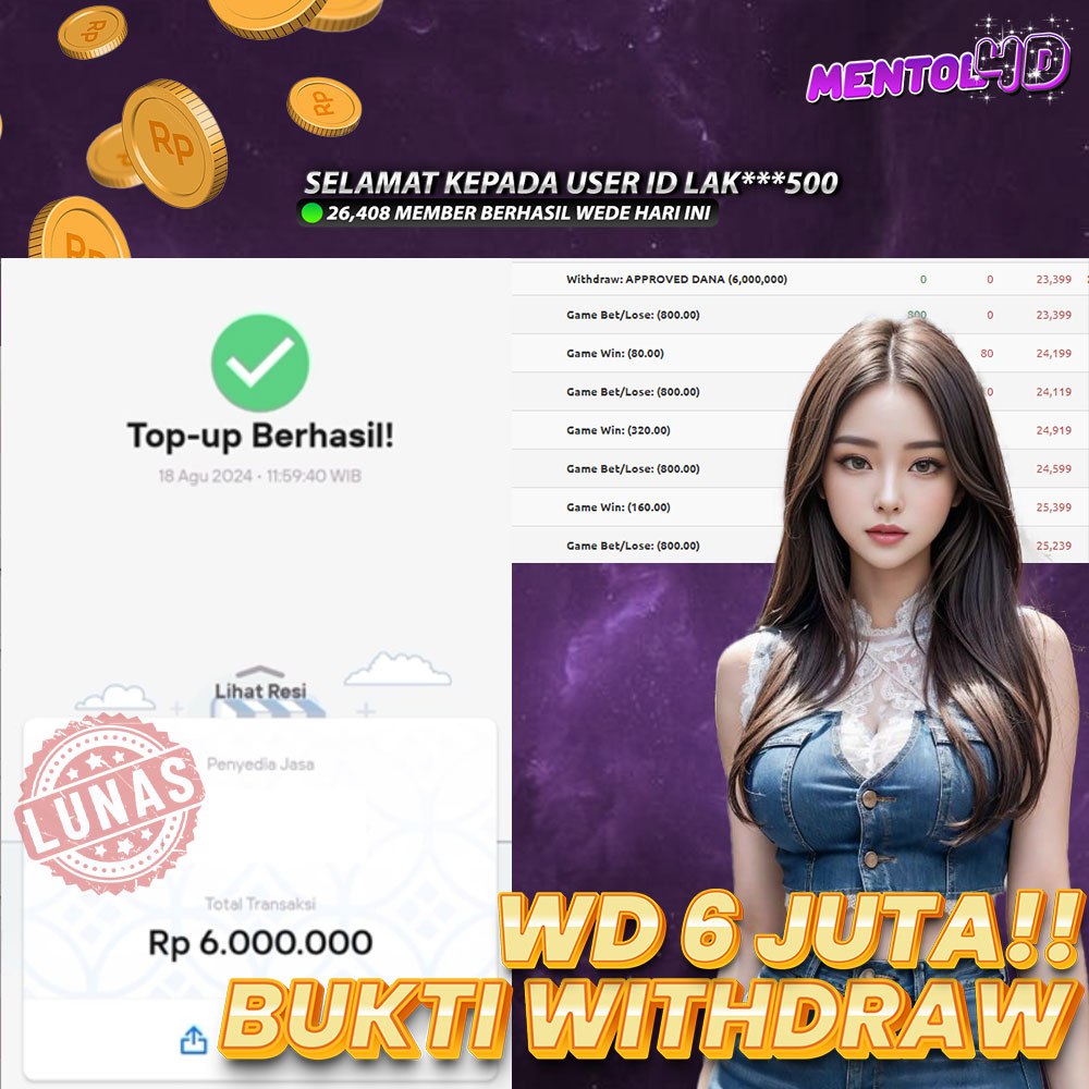 Ayo segera daftarkan diri kalian pada Situs kami di MENTOL4D, dengan minimal deposit Rp.20.000.- & minimal withdraw Rp.50.000.-