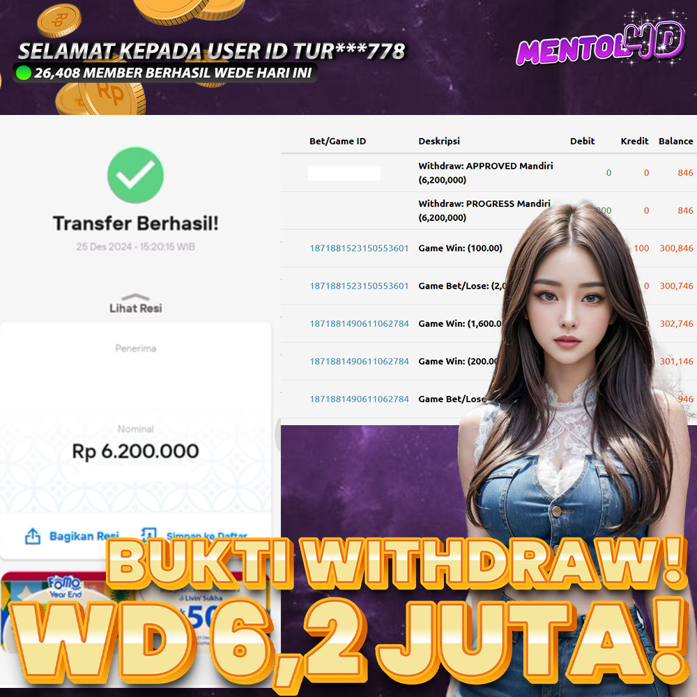 Ayo segera daftarkan diri kalian pada Situs kami di MENTOL4D, dengan minimal deposit Rp.20.000.- & minimal withdraw Rp.50.000.-
