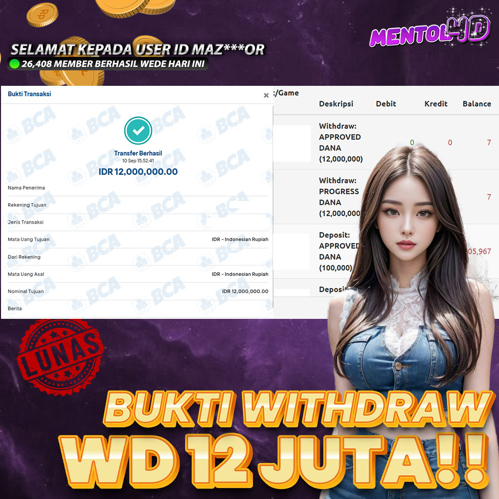 Ayo segera daftarkan diri kalian pada Situs kami di MENTOL4D, dengan minimal deposit Rp.20.000.- & minimal withdraw Rp.50.000.-