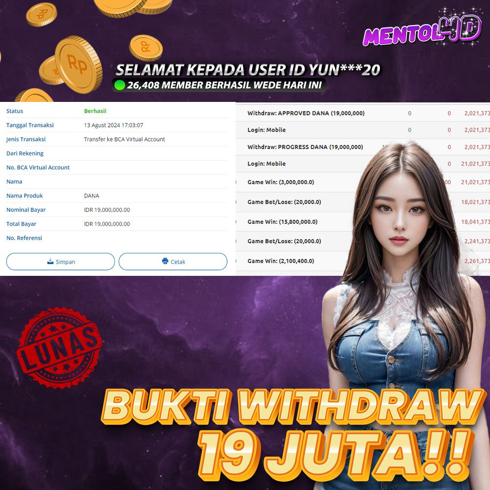 Masih ragu dengan MENTOL4D ? Silahkan lihat bukti kemenangan Member Setia kami, pada Situs MENTOL4d kemenangan berapapun akan dibayarkan kepada kalian semua. MENTOL4D adalah Situs Judi Online Terpercaya Indonesia dan memiliki Jutaan member aktif tiap bulan nya. Ayo raih kemenangan puluhan sampai ratusan juta bersama di situs MENTOL4D.