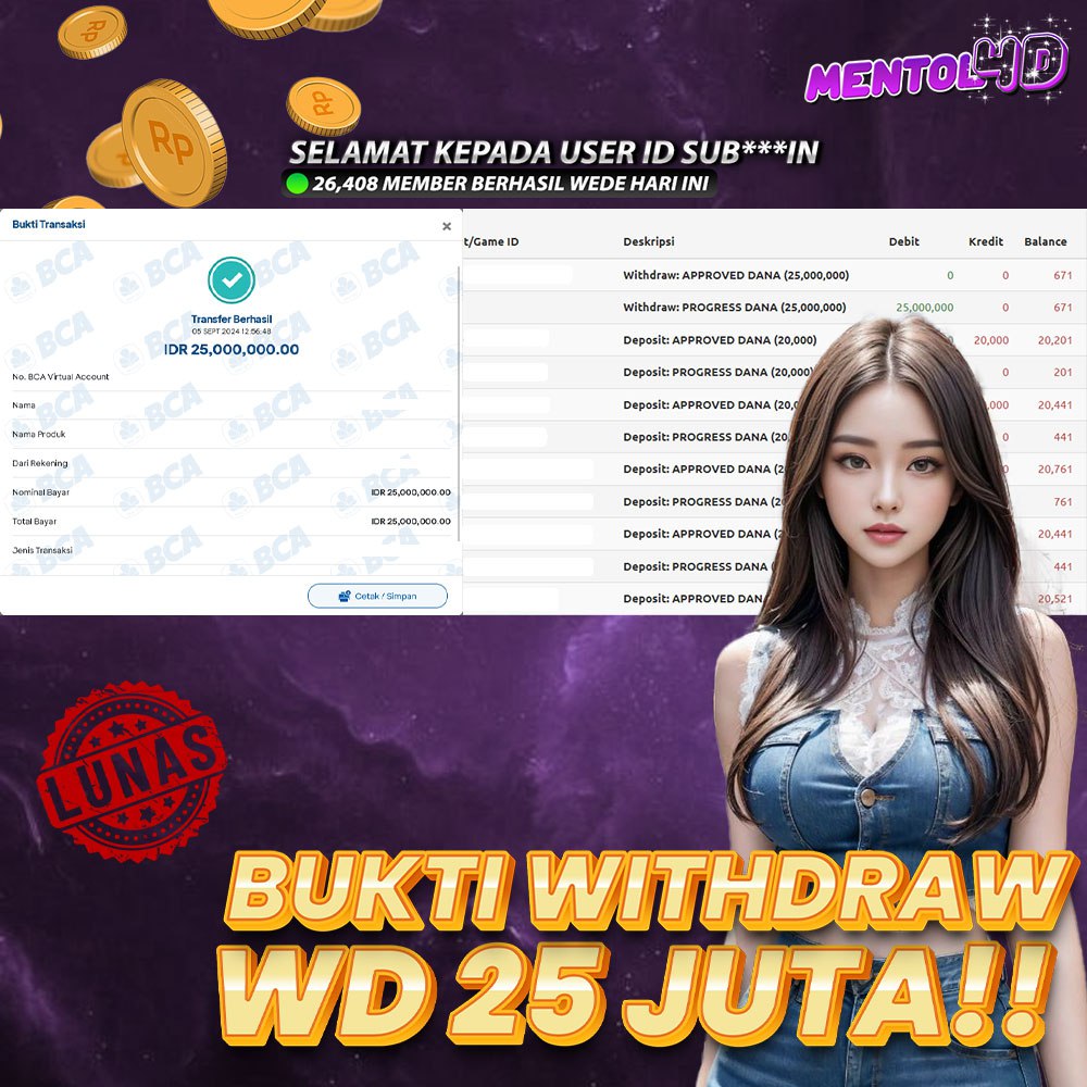 Ayo segera daftarkan diri kalian pada Situs kami di MENTOL4D, dengan minimal deposit Rp.20.000.- & minimal withdraw Rp.50.000.-