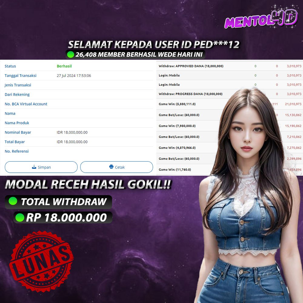 Ayo segera daftarkan diri kalian pada Situs kami di MENTOL4D, dengan minimal deposit Rp.20.000.- & minimal withdraw Rp.50.000.-